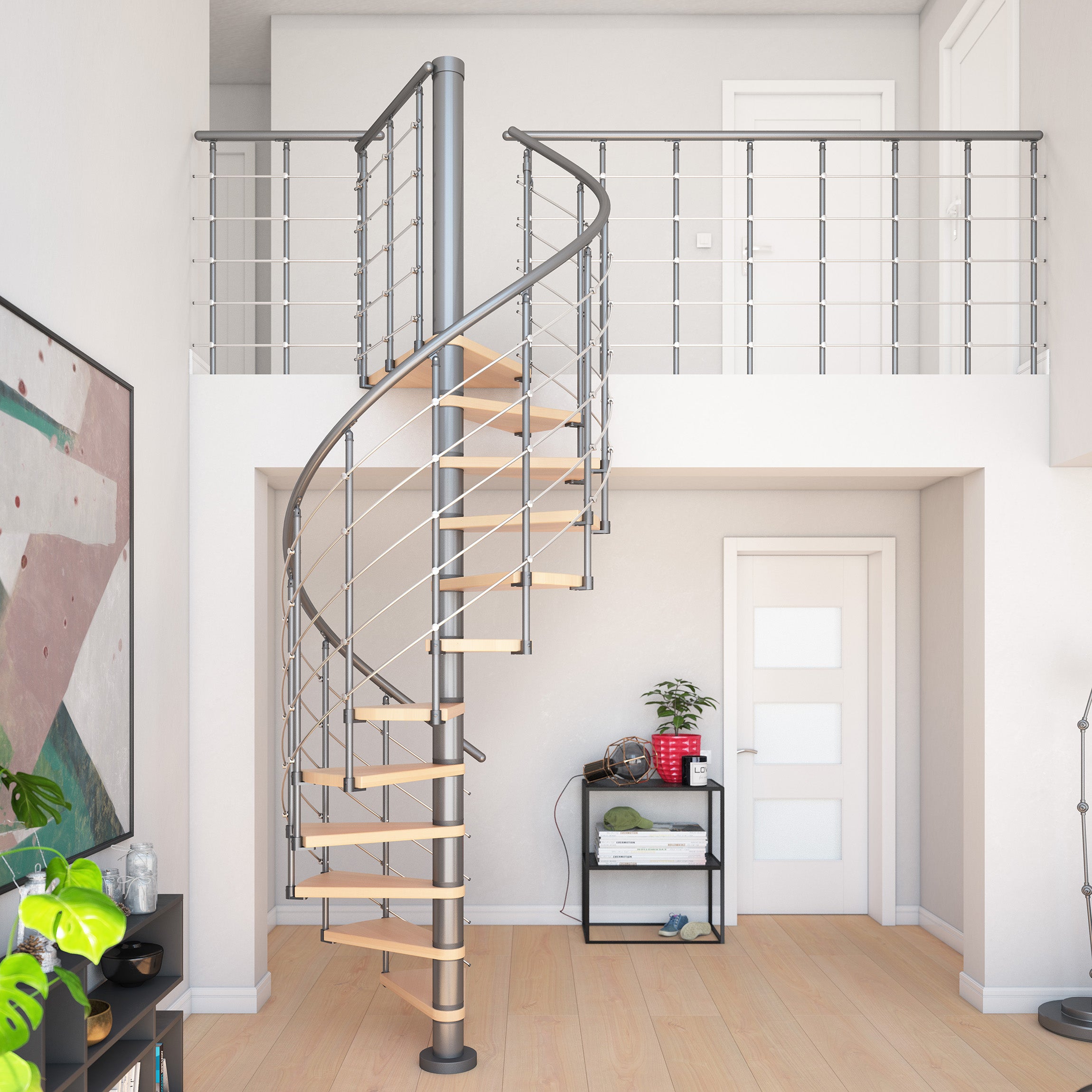 - Platzsparende Spindeltreppe: Ideal für kleine Grundflächen und offene Wohnkonzepte